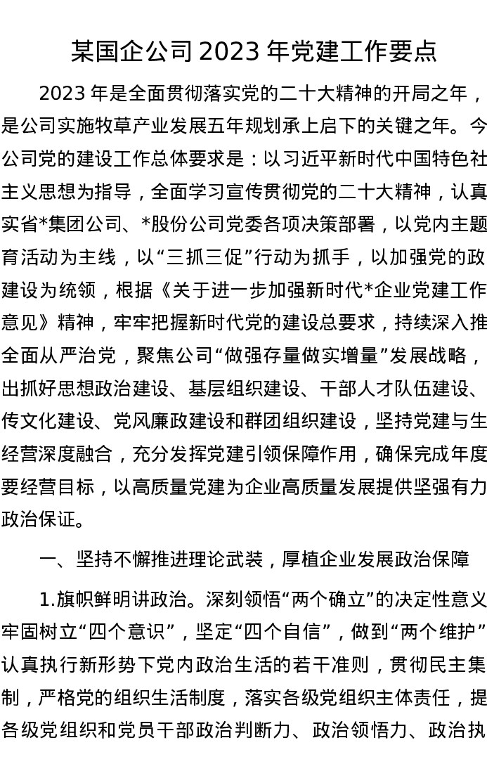 某国企公司2023年党建工作要点