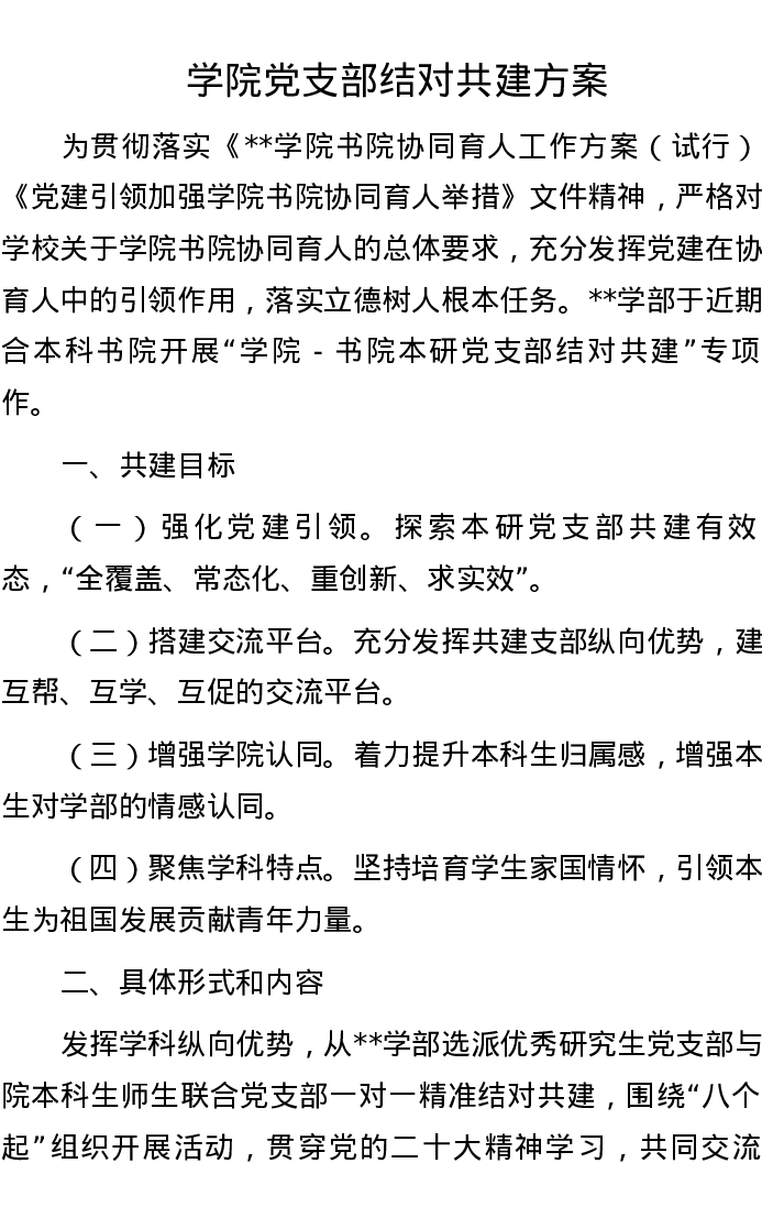 学院党支部结对共建方案