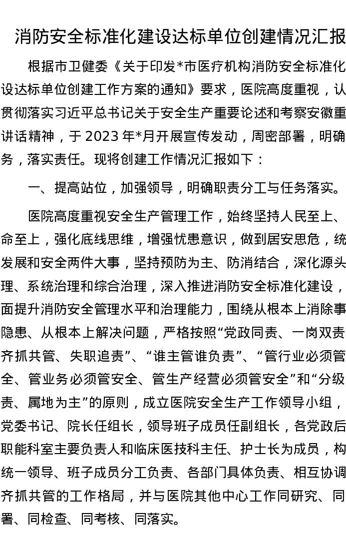 消防安全标准化建设达标单位创建情况汇报