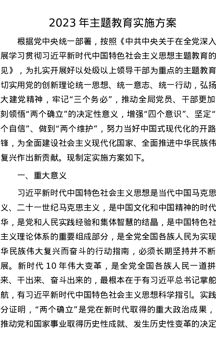 2023年主题教育实施方案
