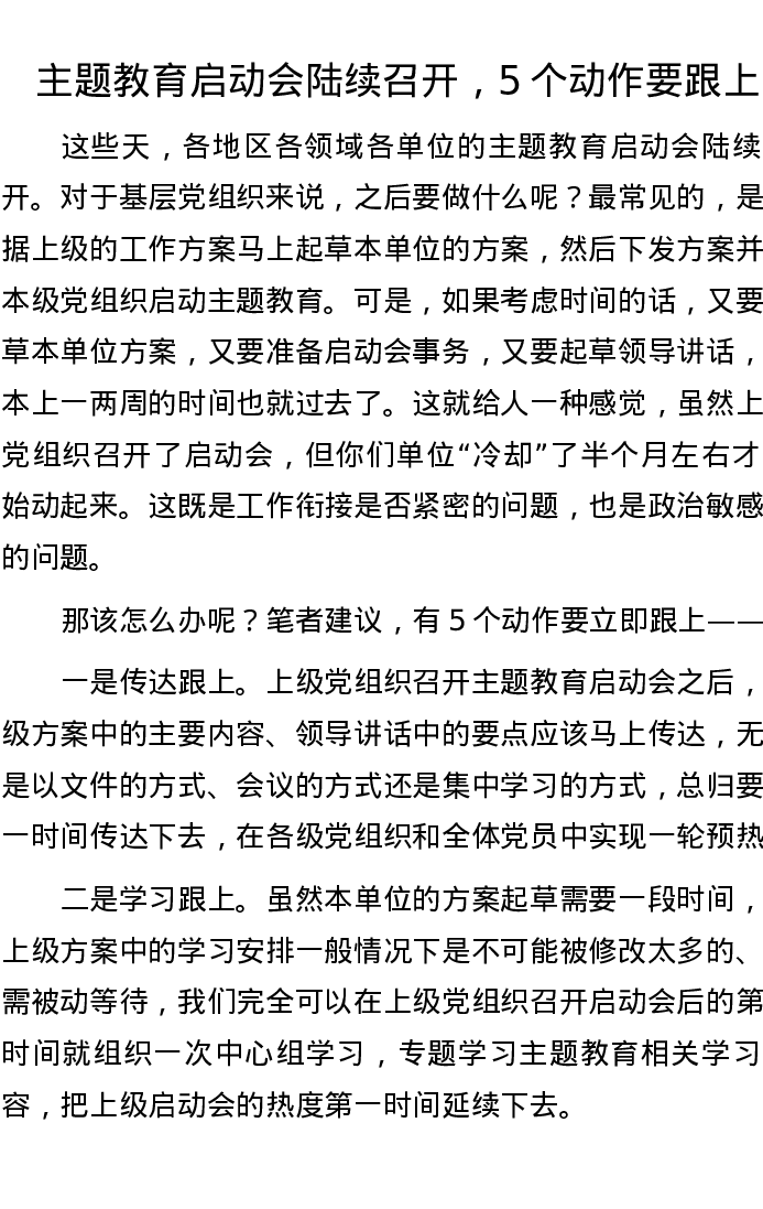 主题教育启动会陆续召开,5个动作要跟上