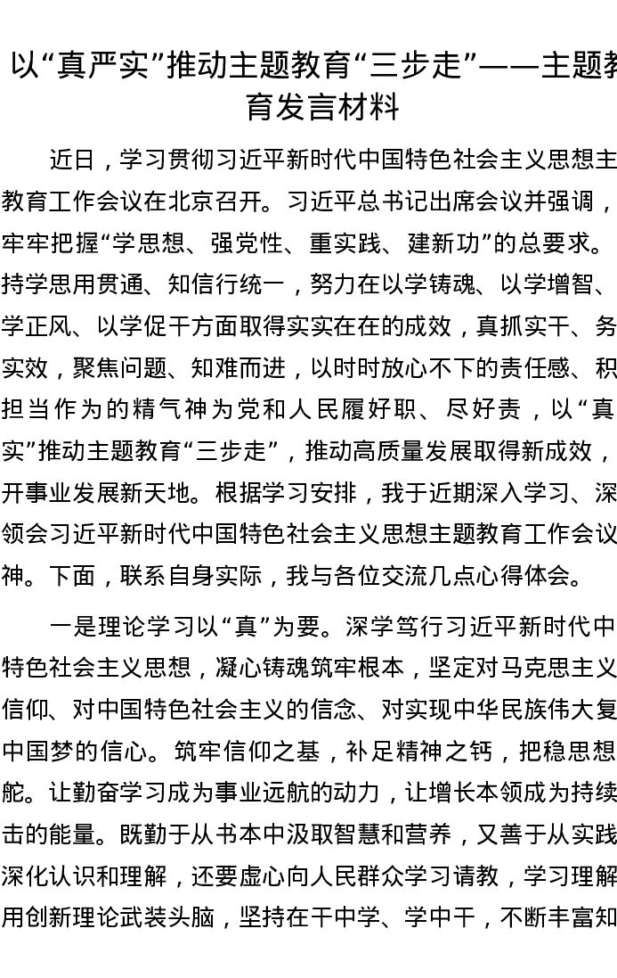 以“真严实”推动主题教育“三步走”——主题教育发言材料