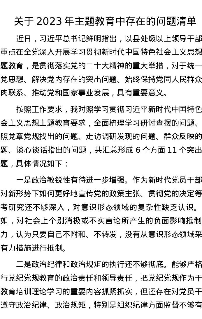 关于2023年主题教育中存在的问题清单