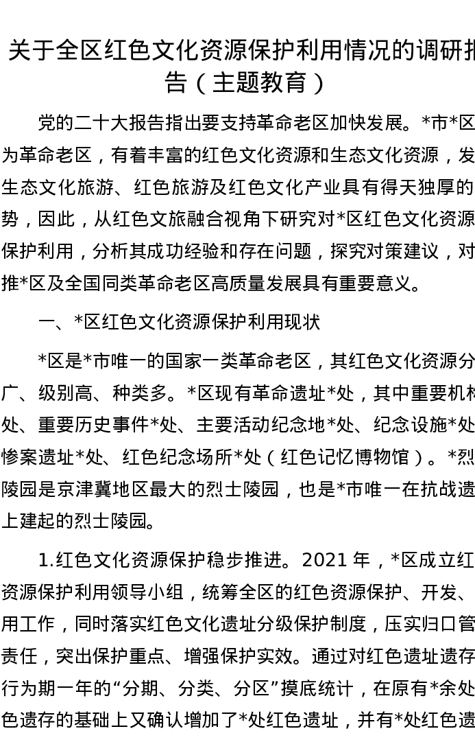 关于全区红色文化资源保护利用情况的调研报告(主题教育)