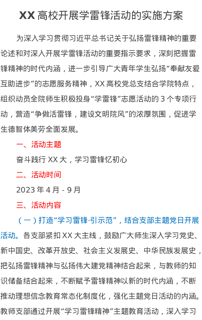 XX高校开展学雷锋活动的实施方案