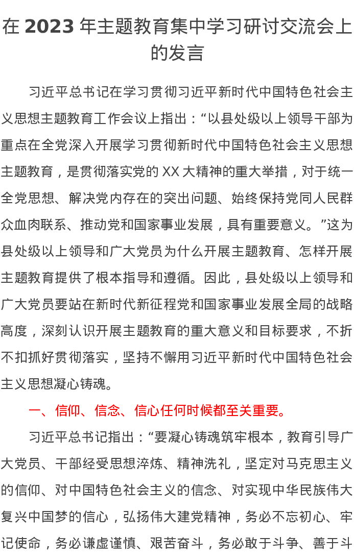 在2023年主题教育集中学习研讨交流会上的发言(特色社会主义思想)