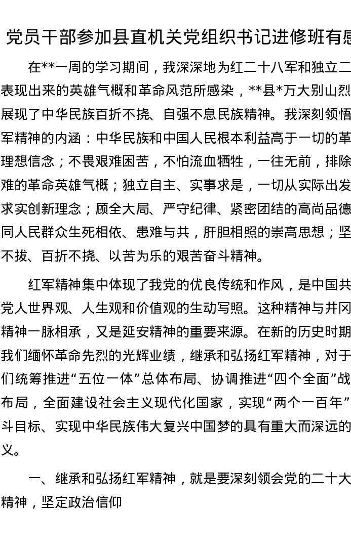 党员干部参加县直机关党组织书记进修班有感