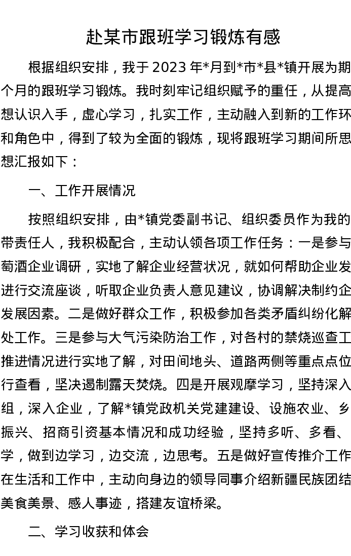 赴某市跟班学习锻炼有感