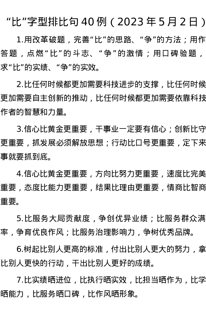 “比”字型排比句40例(2023年5月2日)