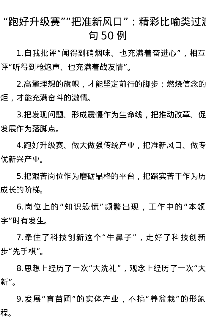 “跑好升级赛”“把准新风口”:精彩比喻类过渡句50例