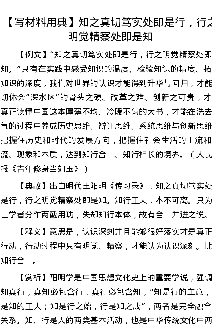 【写材料用典】知之真切笃实处即是行,行之明觉精察处即是知