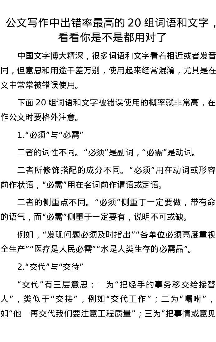 公文写作中出错率最高的20组词语和文字,看看你是不是都用对了