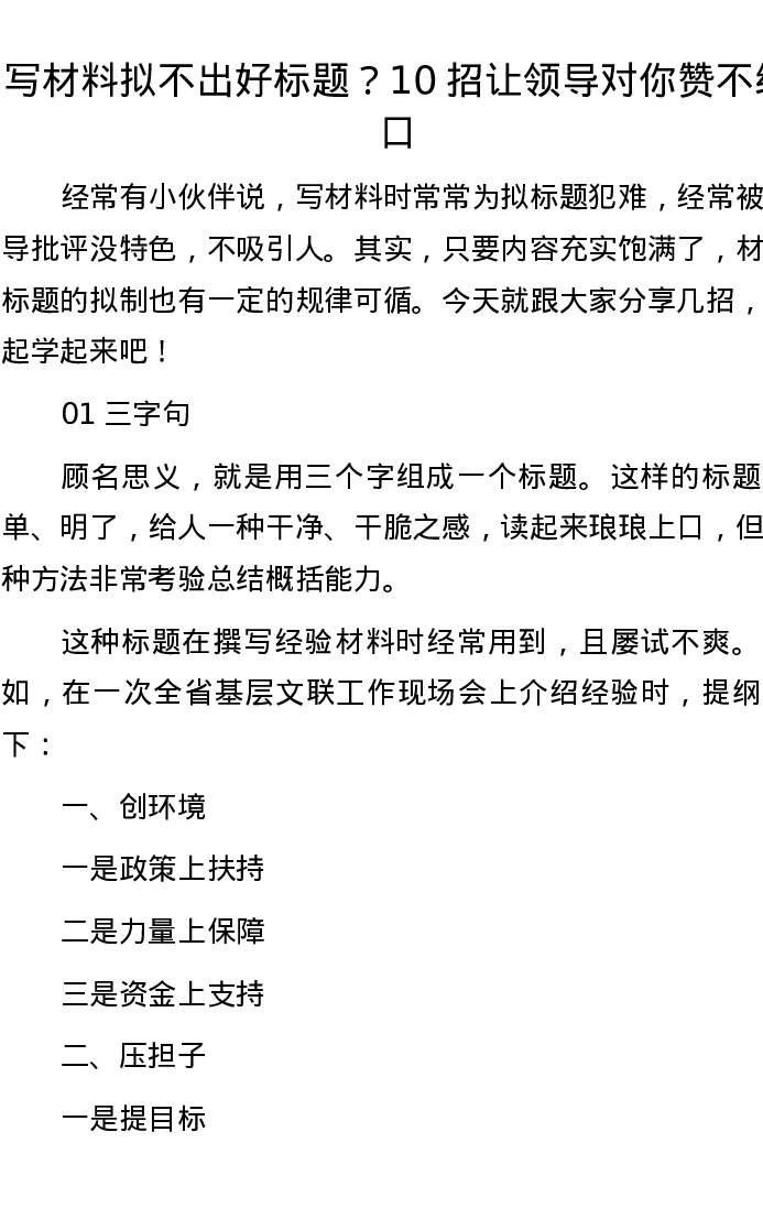 写材料拟不出好标题?10招让领导对你赞不绝口