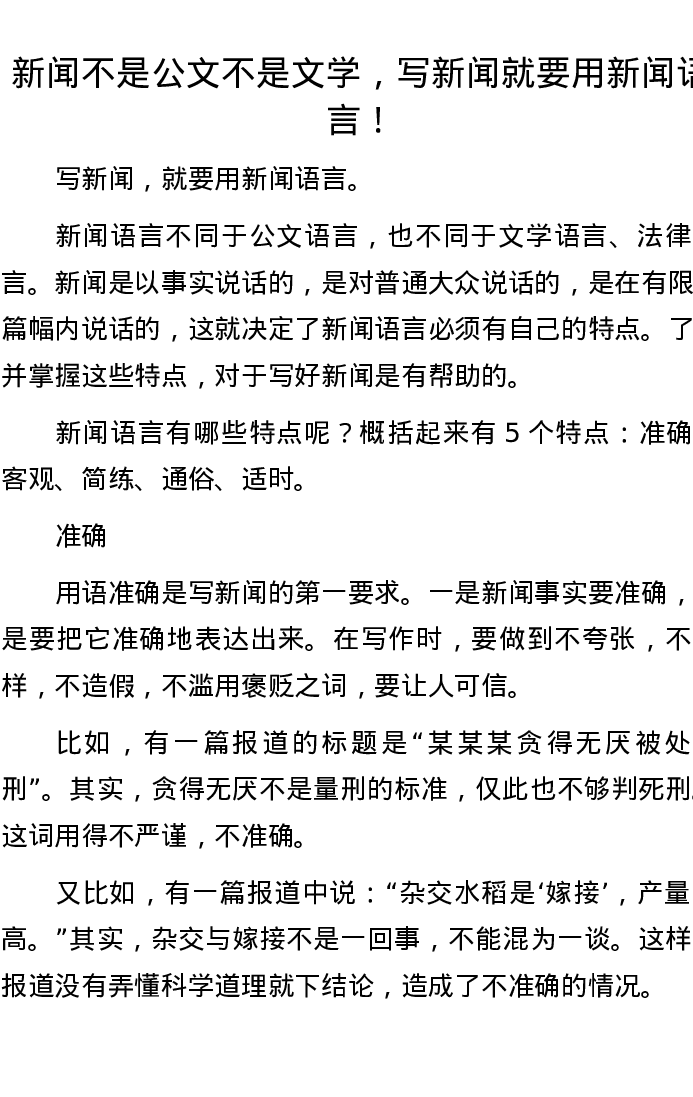 新闻不是公文不是文学,写新闻就要用新闻语言!