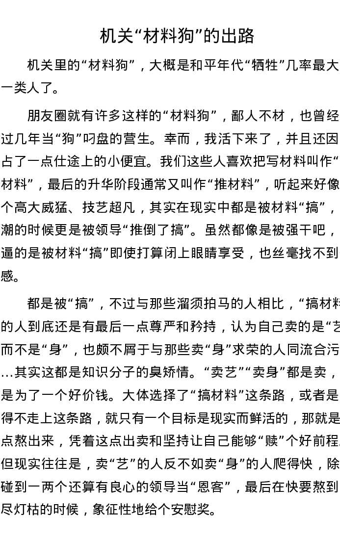 机关“材料狗”的出路