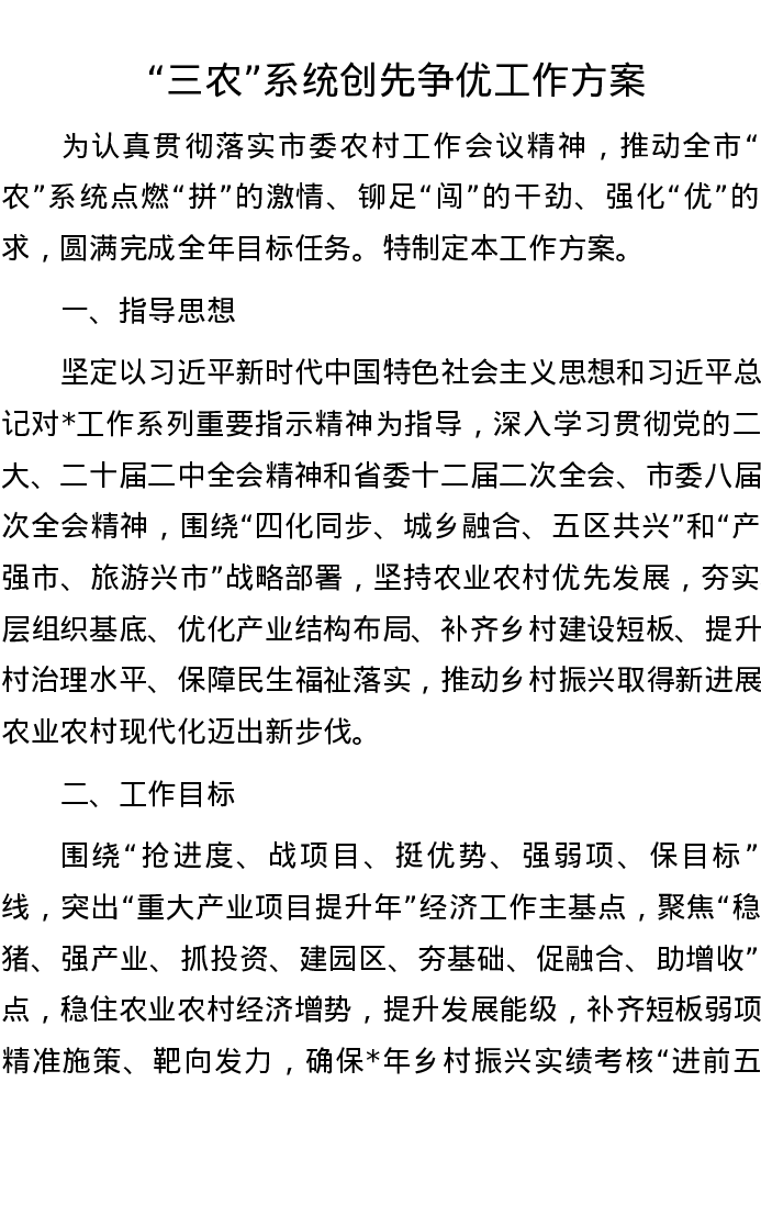 “三农”系统创先争优工作方案