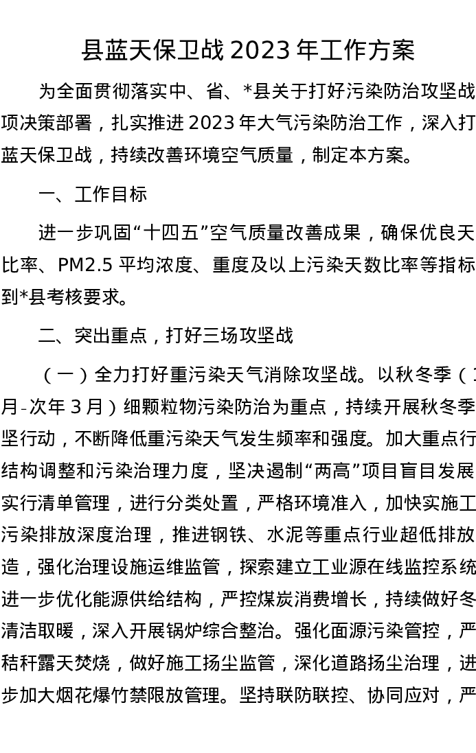 县蓝天保卫战2023年工作方案