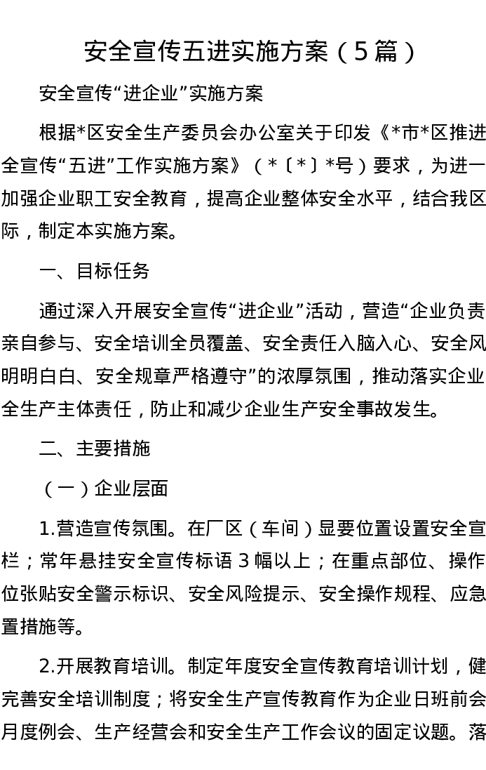 安全宣传五进实施方案(5篇)