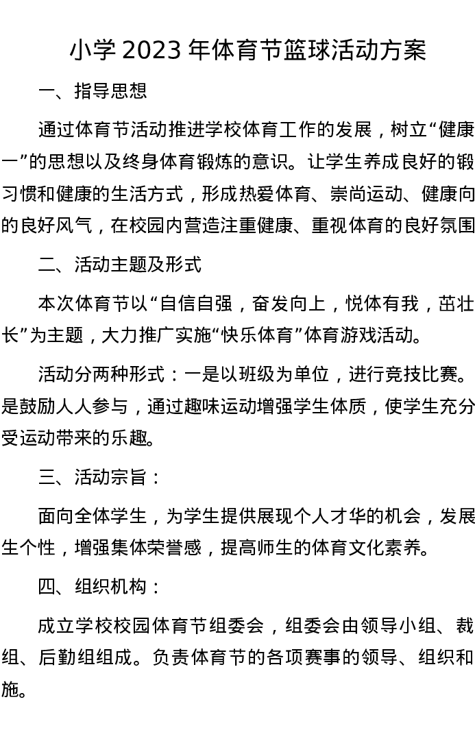 小学2023年体育节篮球活动方案