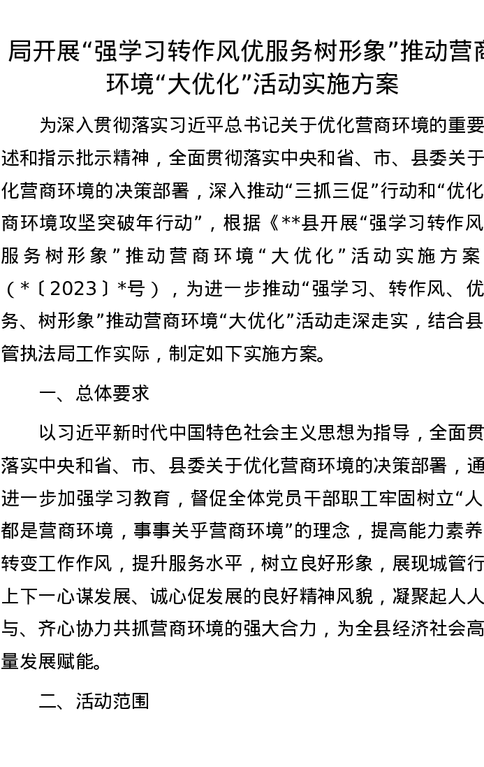 局开展“强学习转作风优服务树形象”推动营商环境“大优化”活动实施方案