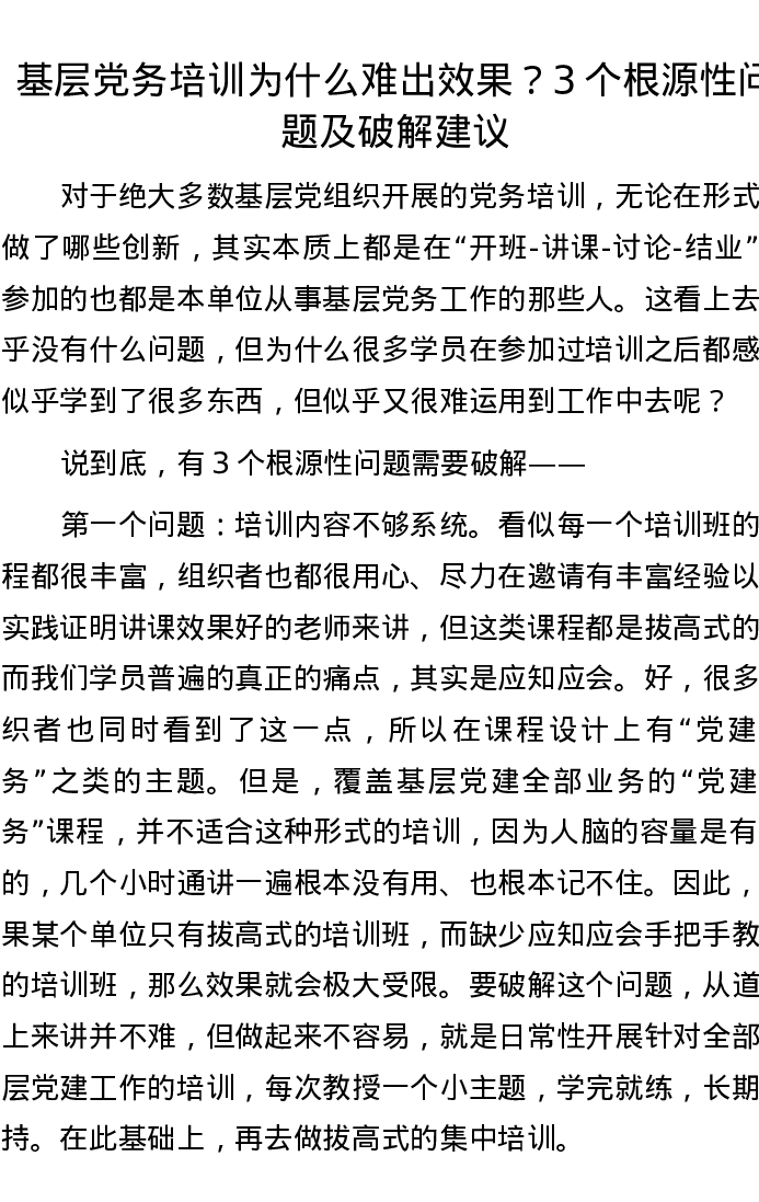 基层党务培训为什么难出效果?3个根源性问题及破解建议