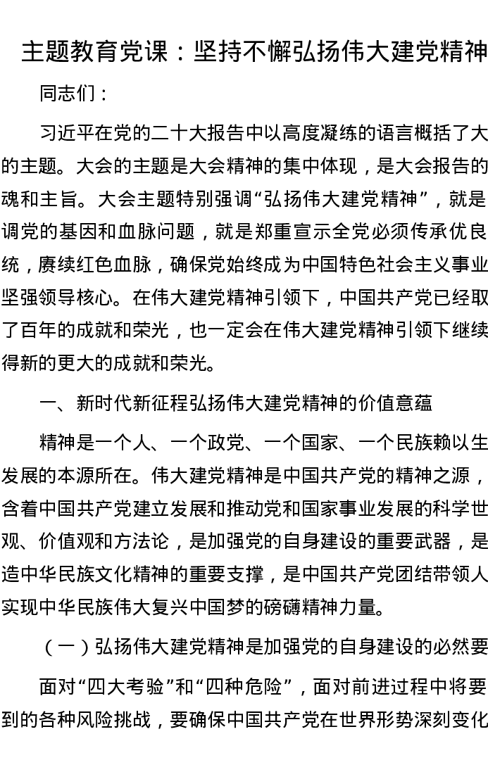 主题教育党课:坚持不懈弘扬伟大建党精神