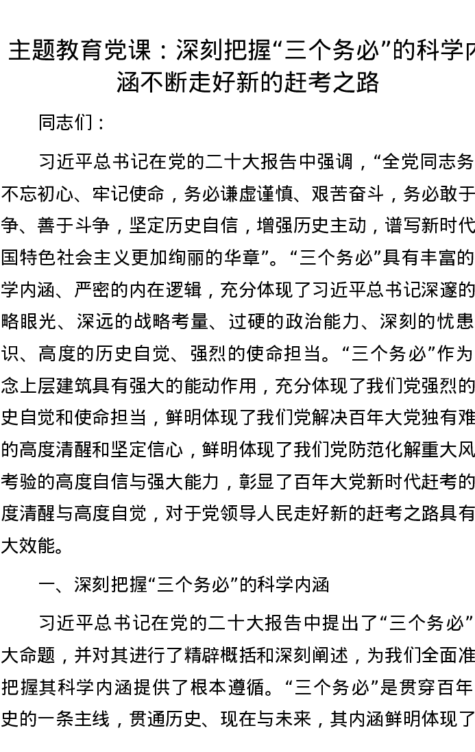 主题教育党课:深刻把握“三个务必”的科学内涵 不断走好新的赶考之路