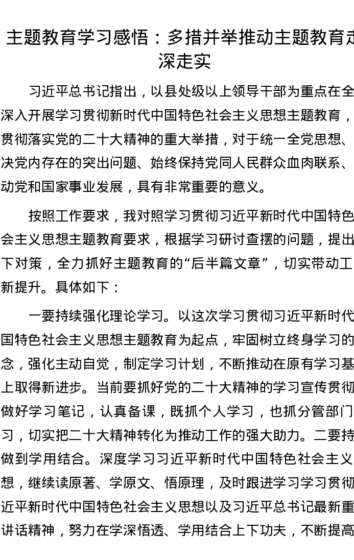 主题教育学习感悟:多措并举 推动主题教育走深走实