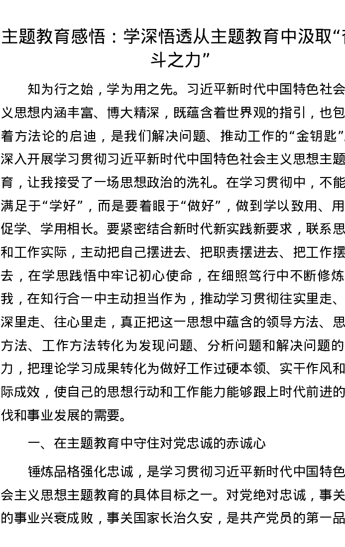 主题教育感悟:学深悟透 从主题教育中汲取“奋斗之力”