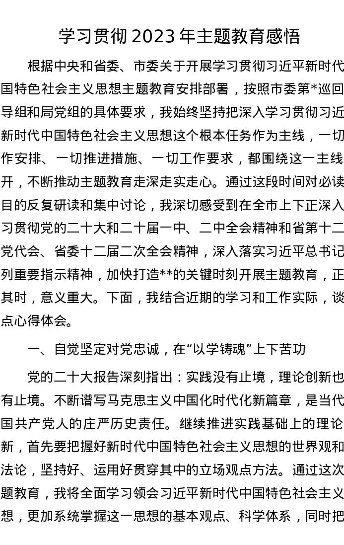 学习贯彻2023年主题教育感悟