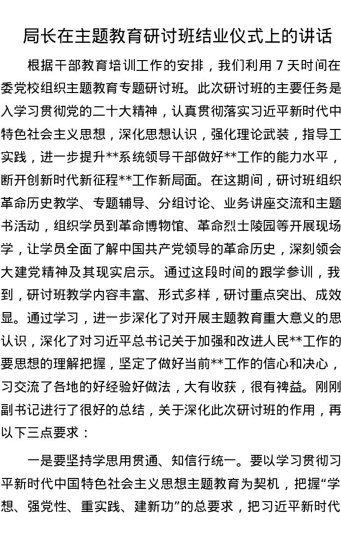 局长在主题教育研讨班结业仪式上的讲话
