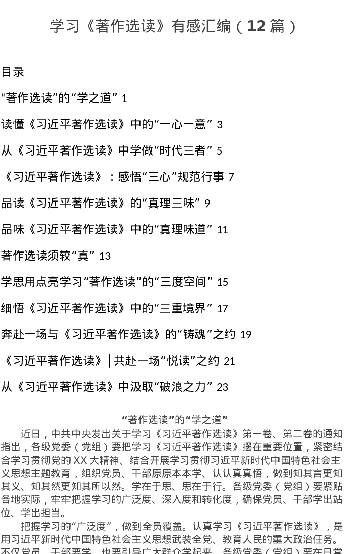汇编:学习《著作选读》有感汇编12篇(心得体会)