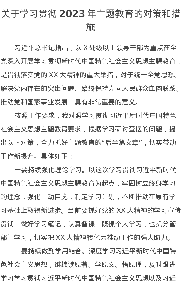 关于学习贯彻2023年主题教育的对策和措施(特色社会主义思想)