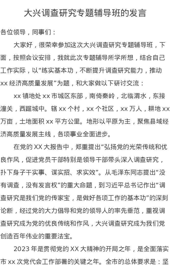 大兴调查研究专题辅导班的发言