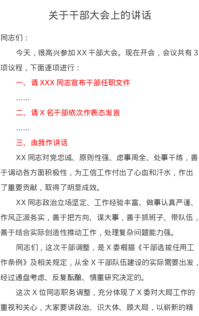 关于干部大会上的讲话