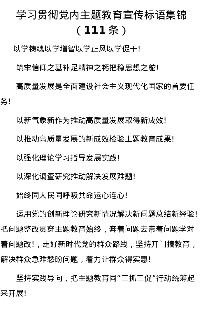 学习贯彻党内主题教育宣传标语集锦111条(特色社会主义思想)