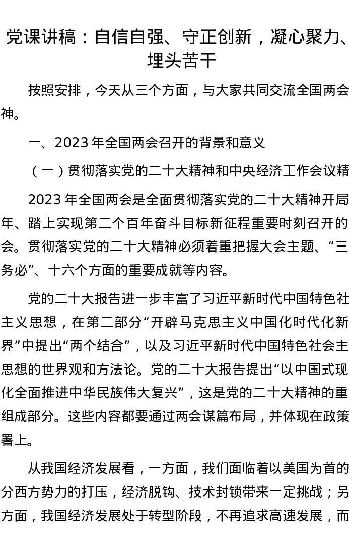 党课讲稿:自信自强、守正创新,凝心聚力、埋头苦干