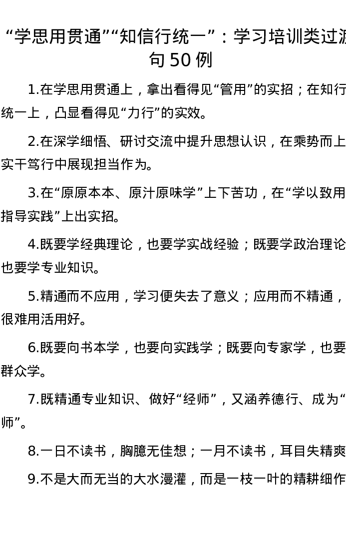 “学思用贯通”“知信行统一”:学习培训类过渡句50例