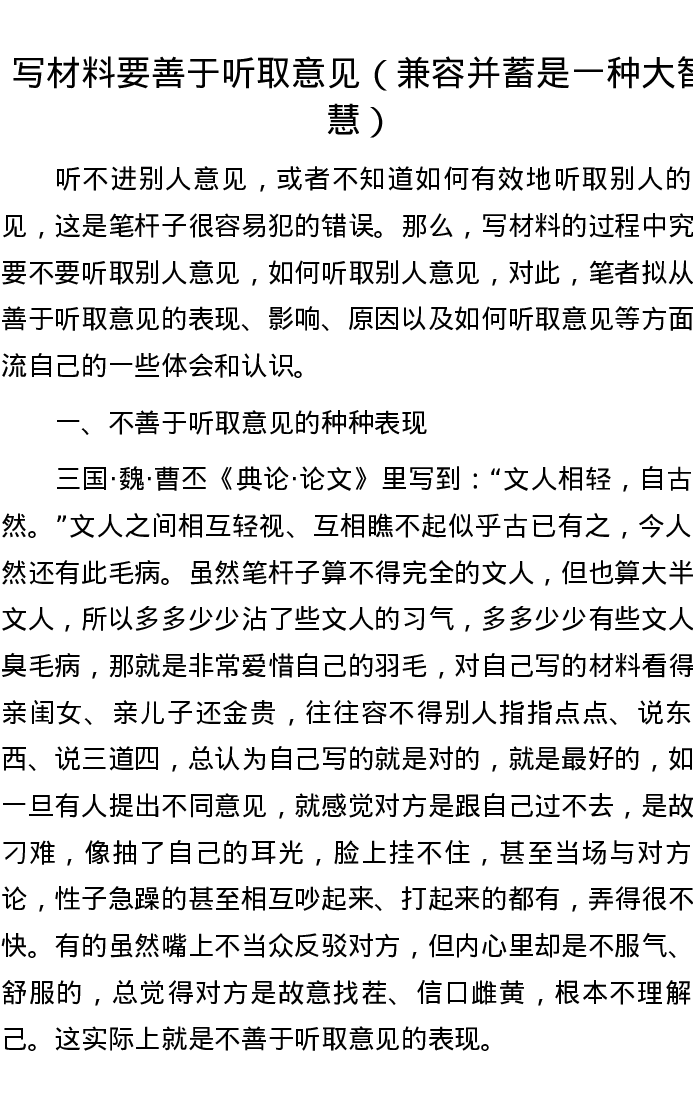 写材料要善于听取意见(兼容并蓄是一种大智慧)