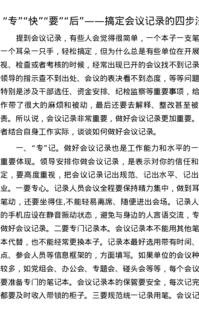 “专”“快”“要”“后”——搞定会议记录的四步法