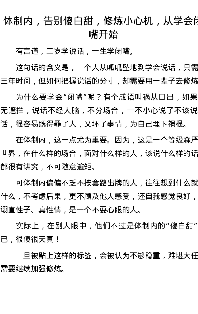 体制内,告别傻白甜,修炼小心机,从学会闭嘴开始