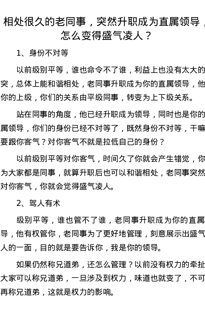 相处很久的老同事,突然升职成为直属领导,怎么变得盛气凌人?