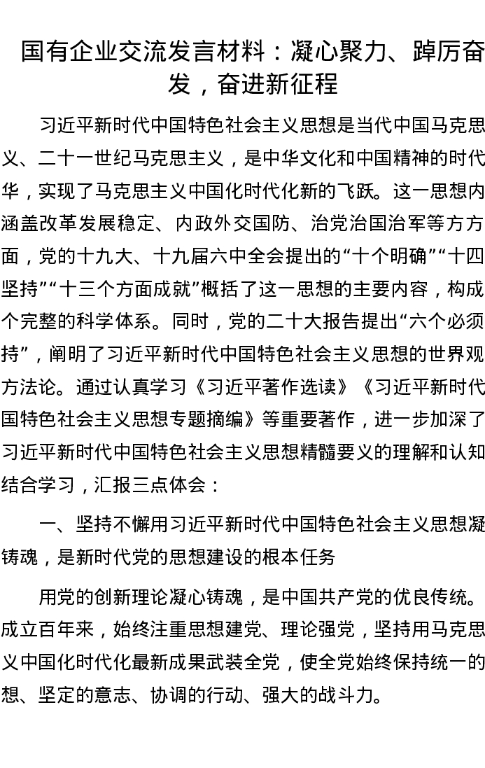 国有企业交流发言材料:凝心聚力、踔厉奋发,奋进新征程