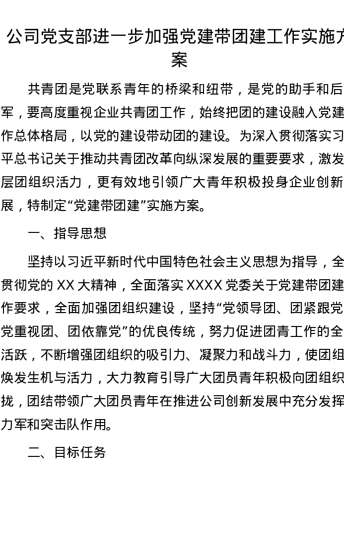 公司党支部进一步加强党建带团建工作实施方案