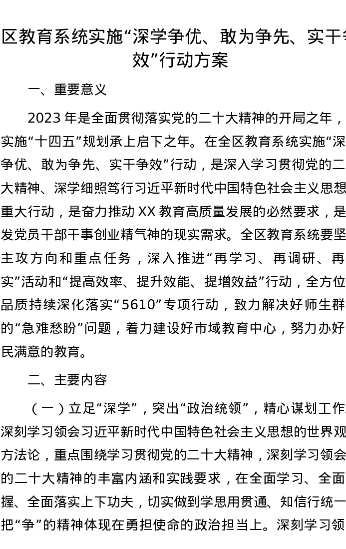 区教育系统实施“深学争优、敢为争先、实干争效”行动方案
