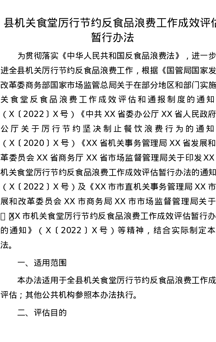 县机关食堂厉行节约反食品浪费工作成效评估暂行办法
