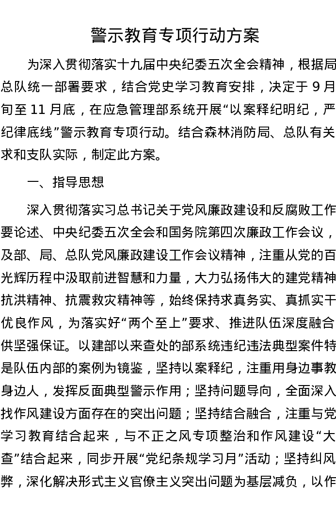 警示教育专项行动方案