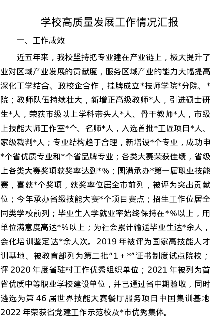 学校高质量发展工作情况汇报
