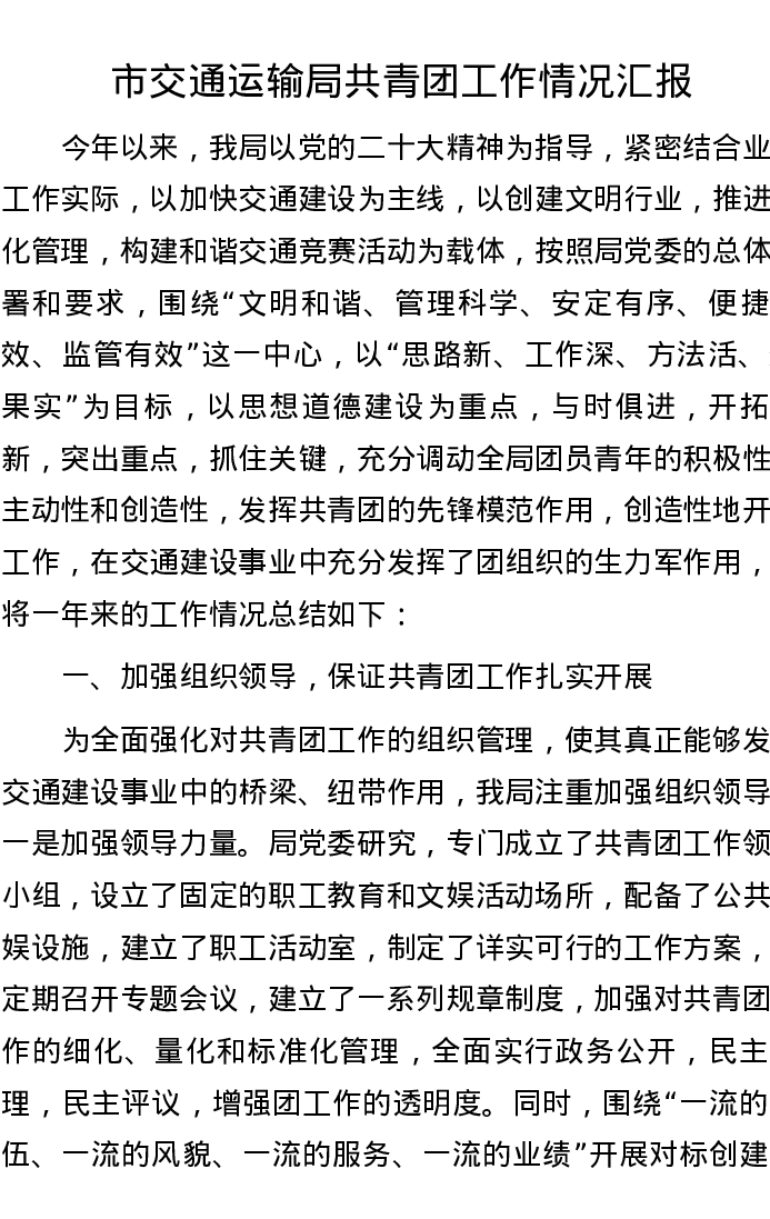 市交通运输局共青团工作情况汇报