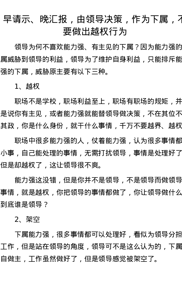 早请示、晚汇报,由领导决策,作为下属,不要做出越权行为